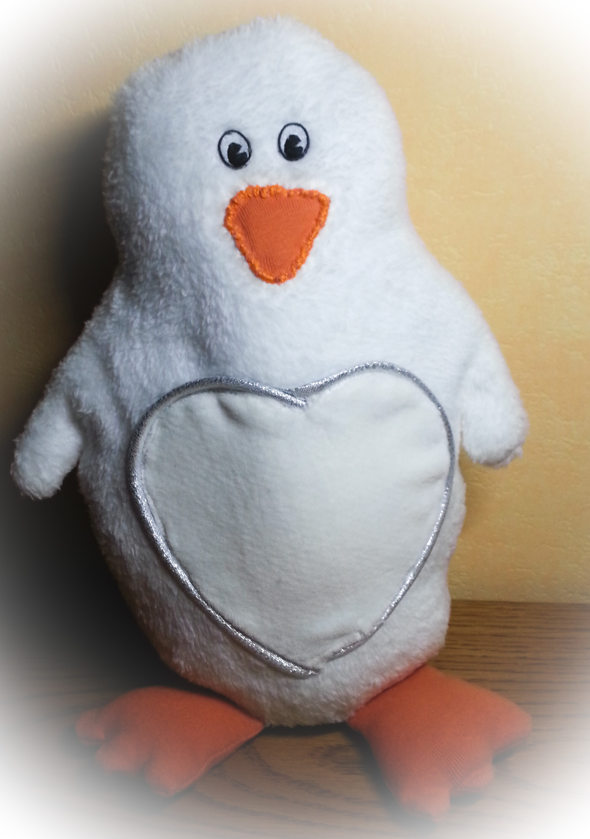 Pingouin réalisé en polaire, jersey velours, jersey extensible Hauteur debout environ 25Cm